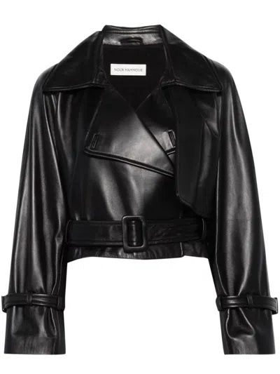 Hatti Cropped Belted Leather Jacket In Black