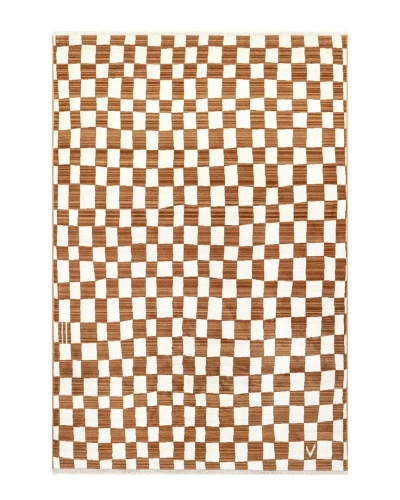 Adelaide Mid-century Checkered Shag Area Rug In Brown