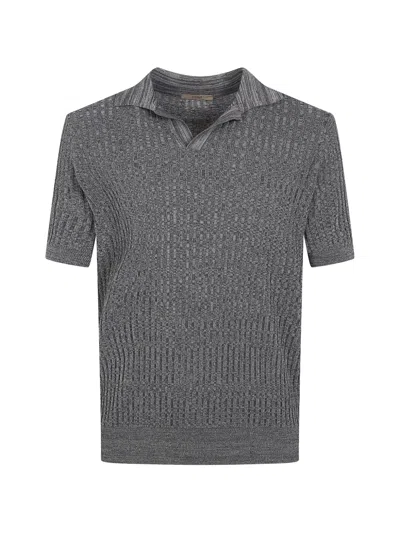 Short Sleeved Polo Neck Mouline T-shirt In Gray