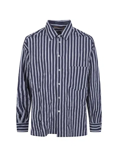 Striped-pattern Pocket Shirt In Blue