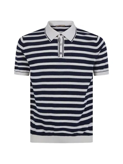 Two Tone Striped Short Sleeved Polo Neck T-shirt In White