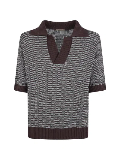 Two Tone Striped Short Sleeved Polo Neck T-shirt In Brown