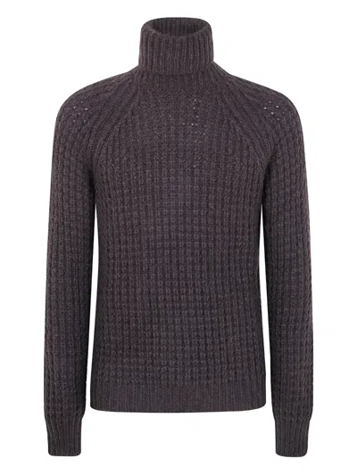 Military Stitch Long Sleeves Turtle Neck Sweater In Brown