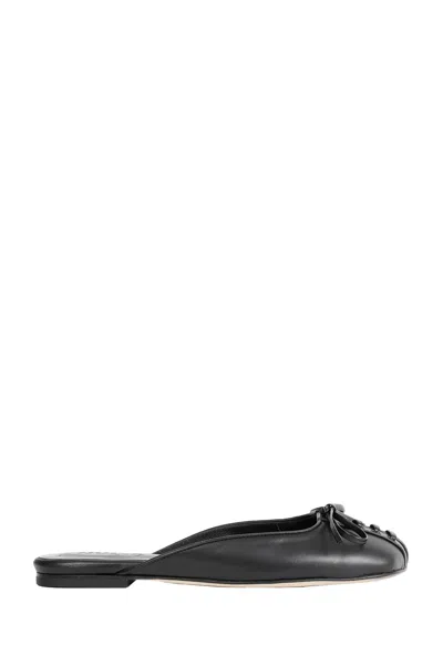 Lace Up Flat Open Back Ballerina In Black