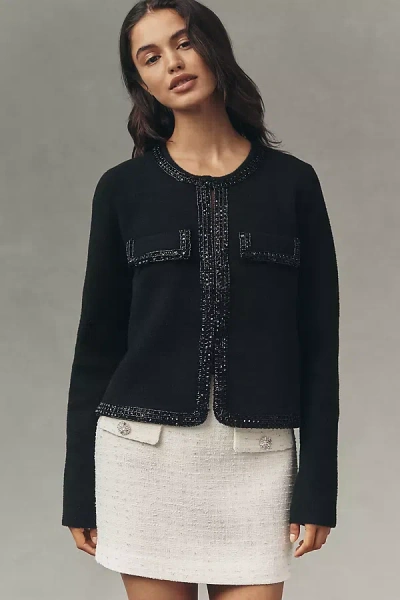 Crystal-embellished Trim Knit Lady Jacket In Black