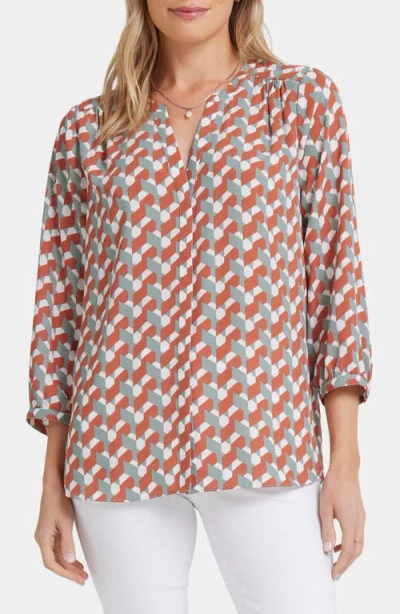 Women's Pintuck Split Neck Top In Graceful Geo