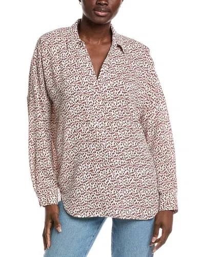 Becky Leaf Print Split Neck Woven Top In Optic White