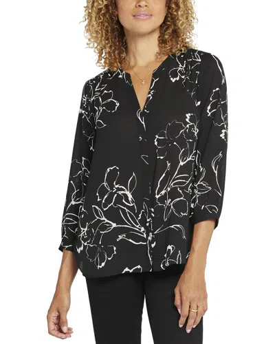Three Quarter Sleeve Printed Pintucked Back Blouse In Meadowood