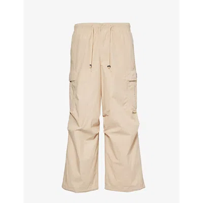 Mens Silver Grey Giant Parachute Brand-patch Wide-leg Relaxed-fit Cotton-poplin Trousers