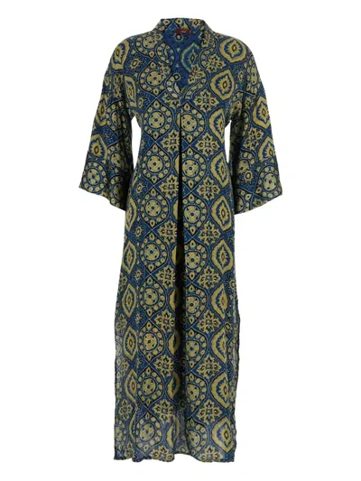 'iris' Multicolor Pants With Wide Leg And All-over Print In Yellow
