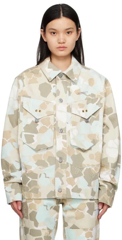 Beige & Blue Camouflage Denim Jacket