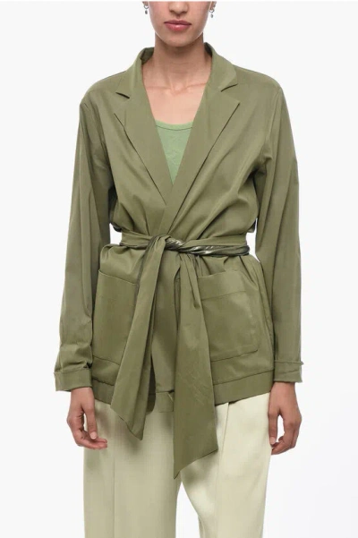 Unlined No Fastening Blazer With Self-tie Detail In Green