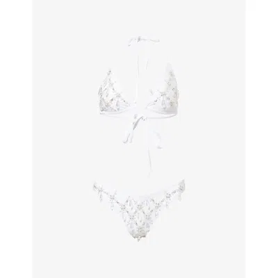 Womens X Zandra Rhodes Swirlshell Beaded Bikini Set In Blue