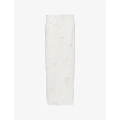 Womens White Faith Beaded Mid-rise Maxi Skirt