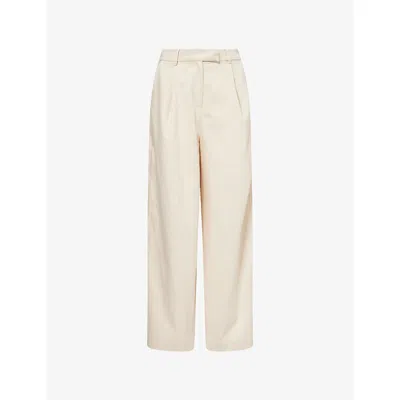 Womens Stone High-rise Wide-leg Cotton-blend Trousers In Neutral