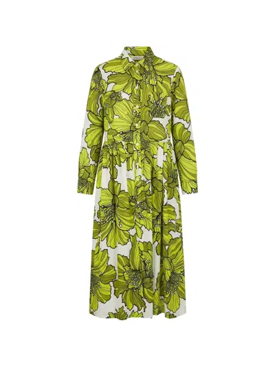 Hibiscus Floral-pattern Midi Dress In Green