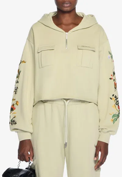 Arrow Glowing Flower Crop Zip Jacket In White
