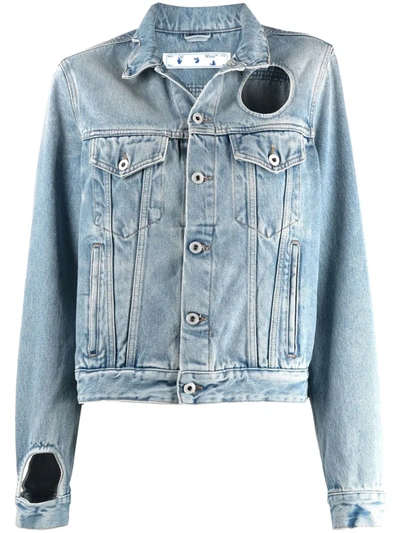 Toy Box Splatter Paint Crop Denim Jacket With Detachable Hood In Light Blue
