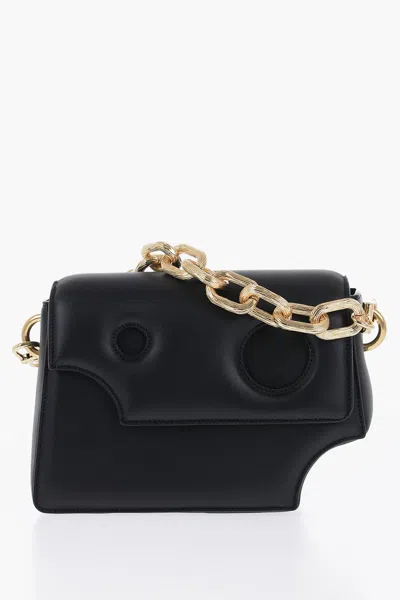 Leather Crossbody Bag With Cut-out Details And Golden Chain In Black