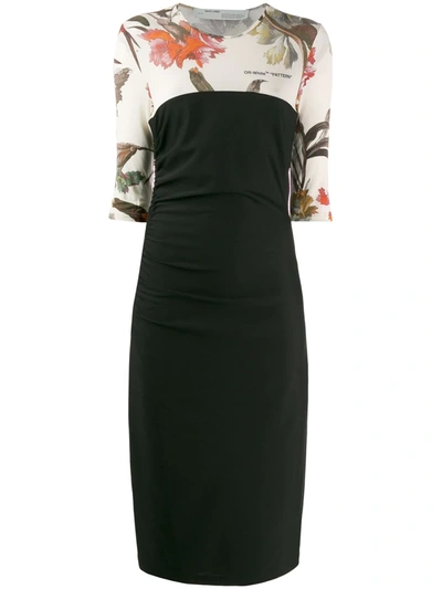Cold-shoulder Floral-print Silk-moire Midi Dress In Multicolor