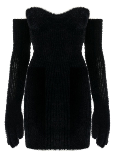 Fuzzy Body-con Mini Dress With Attached Gloves In Black No Color