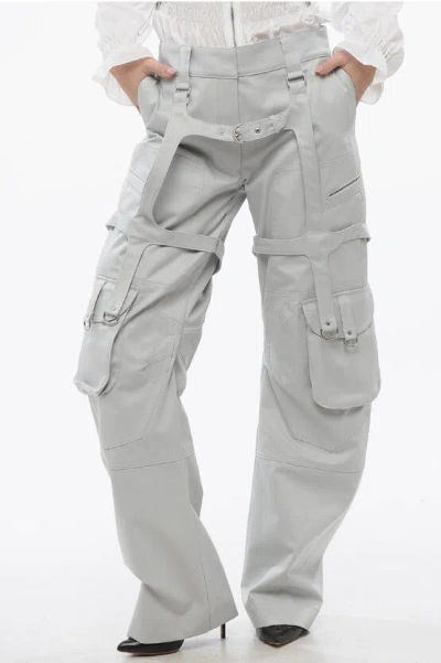 Bleached Effect Baggy Fit Cargo Pants With Harness-style Det In Gray