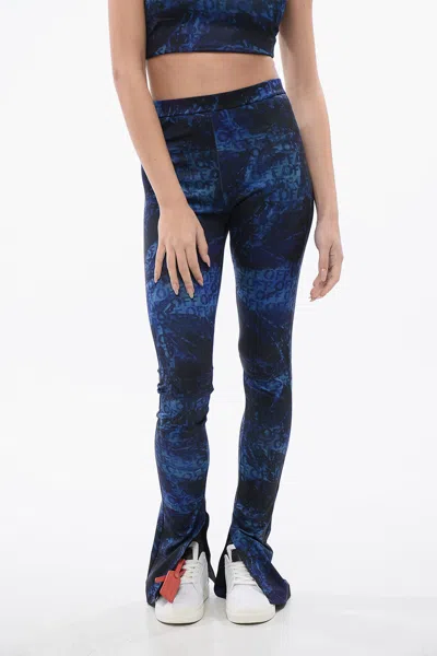 Printed Leggings With Side Slits In Blue