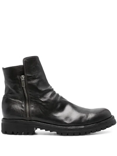 Lace-up Leather Boots In Black