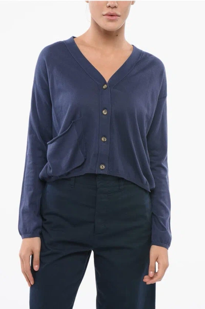 V-neck Cotton Over Cardigan With Breast Pocket In Blue