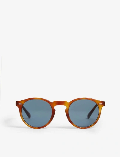 Mens Brown Gregory Peck Tortoiseshell Round-frame Sunglasses In Brown Grey