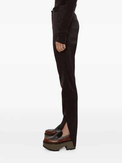 开衩裤脚缎面长裤