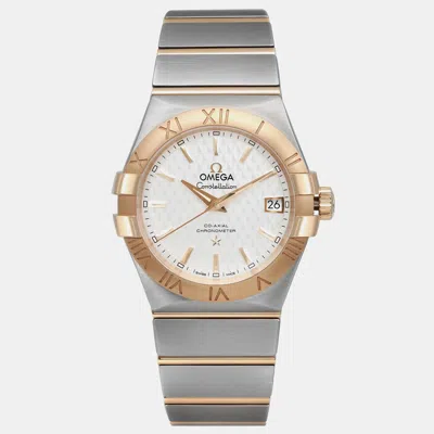 Pre-owned White 18k Gold Stainless Steel Constellation 123.20.35.20.02.006 Automatic Women's Wristwatch 35mm In Silver
