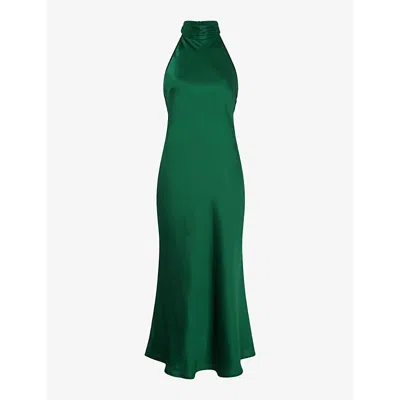 Womens Seychelles Halterneck Recycled-polyester Satin Maxi Dress In Alpine Green