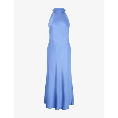 Womens Blue Seychelles Halterneck Satin Maxi Dress