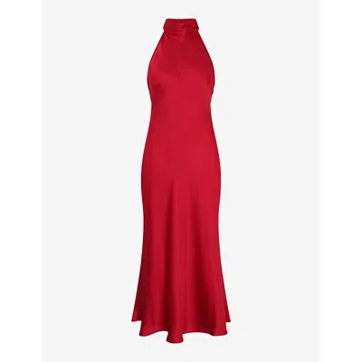 Womens Seychelles Halterneck Recycled-polyester Satin Maxi Dress In Barbados Cherry