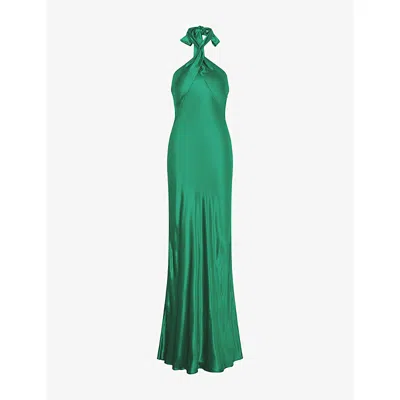Womens Forest Green Arles Halterneck Satin Maxi Dress