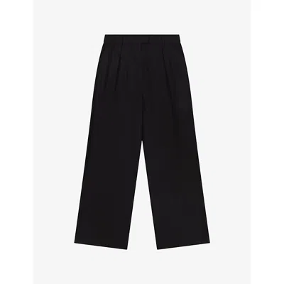Womens Black Pearl Wide-leg Linen-blend Trousers