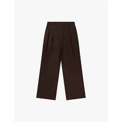 Womens Chocolate Pearl Wide-leg Linen-blend Trousers In Brown
