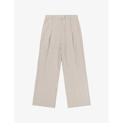 Womens Cream/black Stripe Striped Wide-leg Linen-blend Trousers