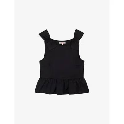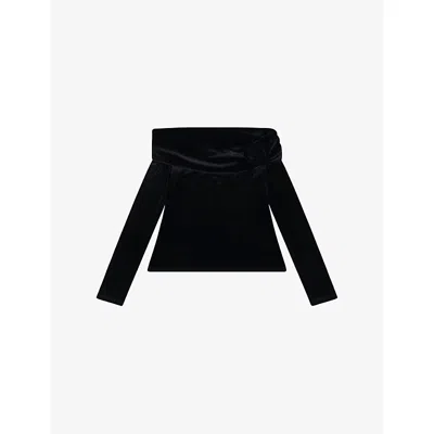 Womens Black Paris Rose-appliqué Stretch-velvet Top