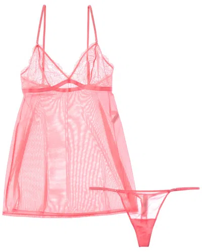 Ongossamer Luxe Lace Chemise & String Thong Set In Pink