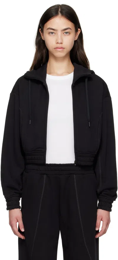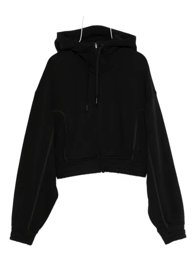 Womens Black Focus Tech Relaxed-fit Stretch-cott Blend Hoody