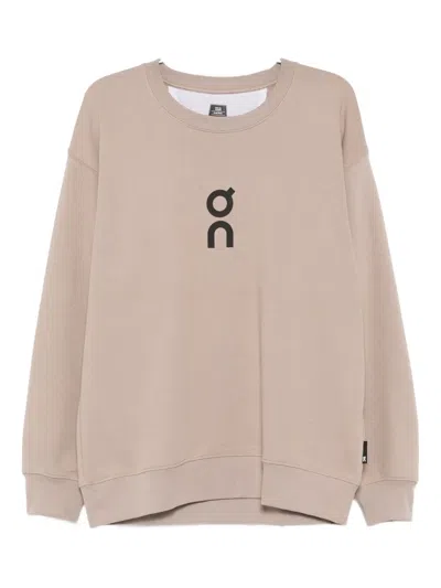 Mens Desert Focus Tech Crewneck Stretch-cott Blend Sweatshirt In Neutral