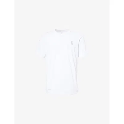 Mens White Train-t Graphic Brand-print Stretch-woven T-shirt