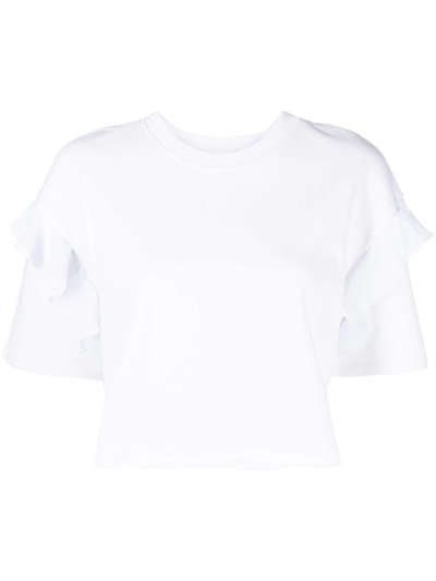 短款荷叶边饰T恤