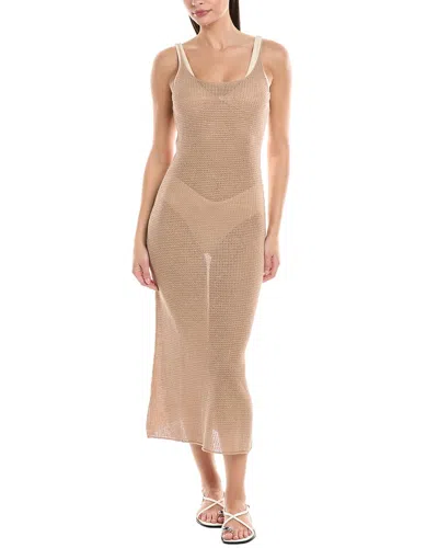 Textured Sweater Scoop Linen Maxi Dress In Brown