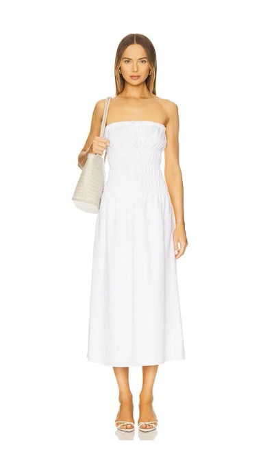 Air Smocked Linen-blend Midi Dress In White
