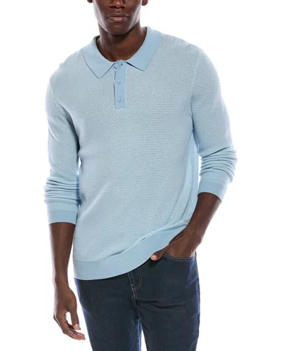 Textured Knit Long Sleeve Polo Shirt In Blue