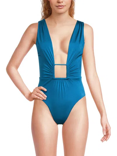 Women's Plunge-front One-piece Swimsuit In Blue
