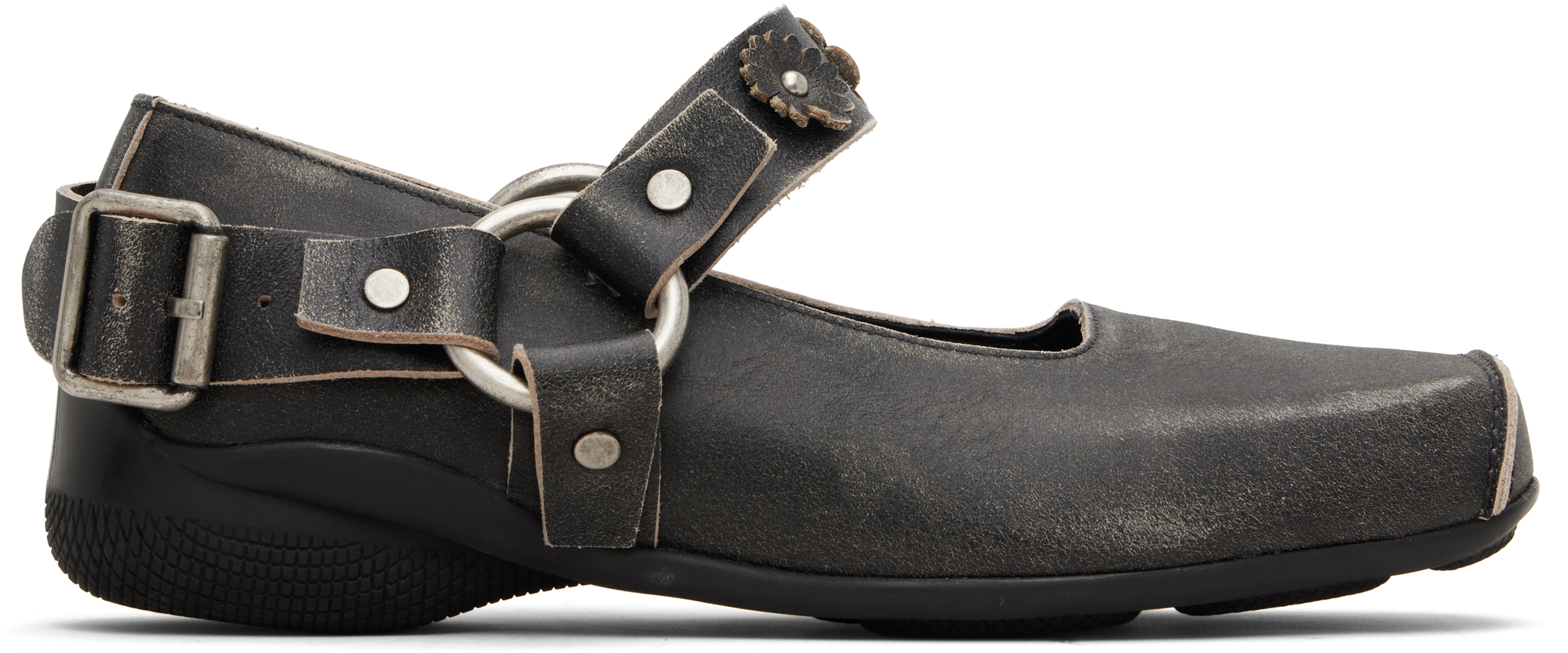 Gray Cross Buckle Ballet Flats